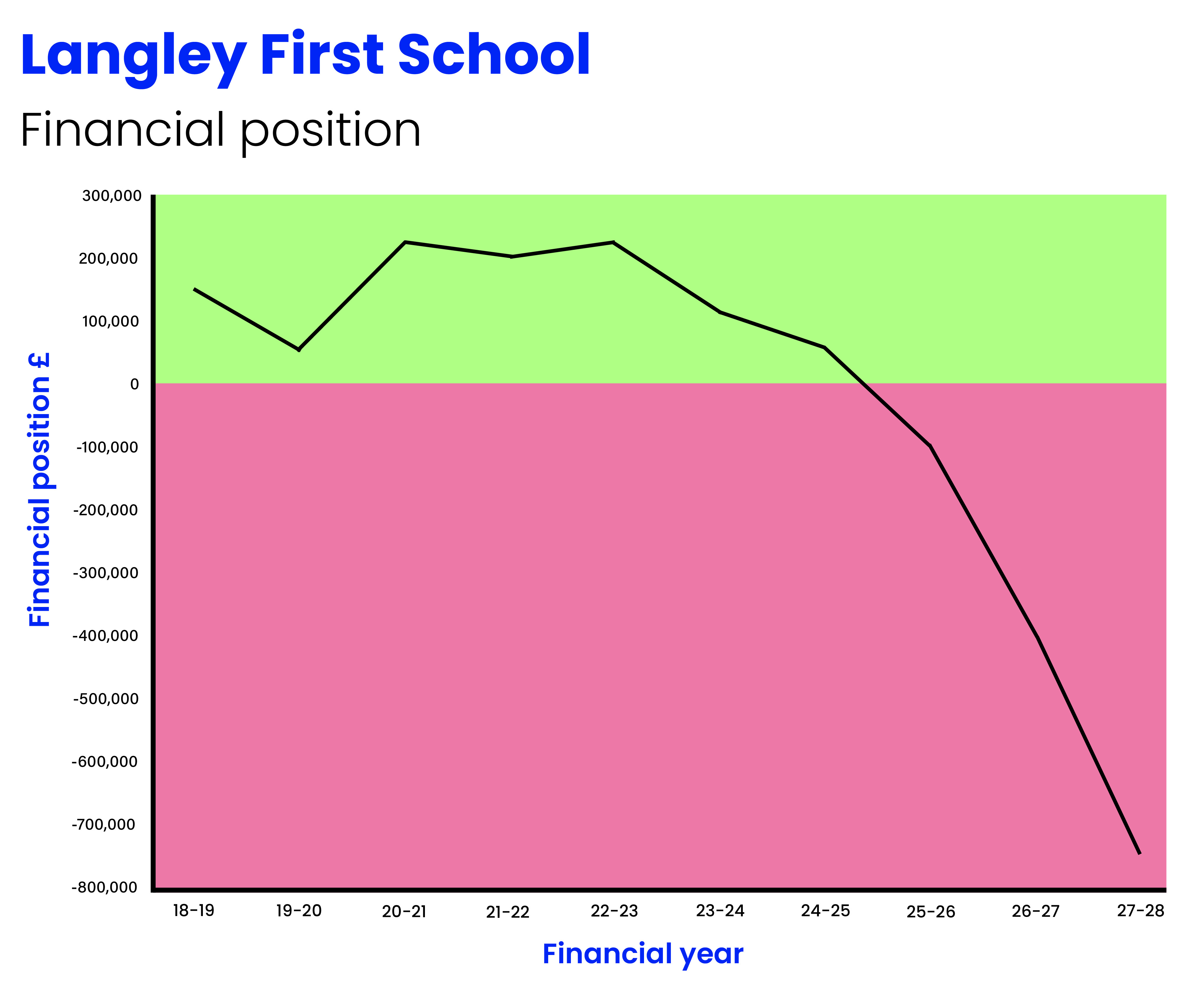 While currently both schools are in surplus (they receive more funding than they spend), Langley First is predicting a deficit (spending more than they receive) in 2026 which is projected to grow to £0.751m by 2028. At the same time Appletree Gardens is predicting it will enter deficit by 2028. School leaders have made changes and worked hard with the Council to make the financial situation better, but because low pupil numbers mean less funding, the situation is not improving. If left unchanged, the risk is that the two schools would continue to grow in deficit, and this in turn would limit their ability to sustain high quality education.