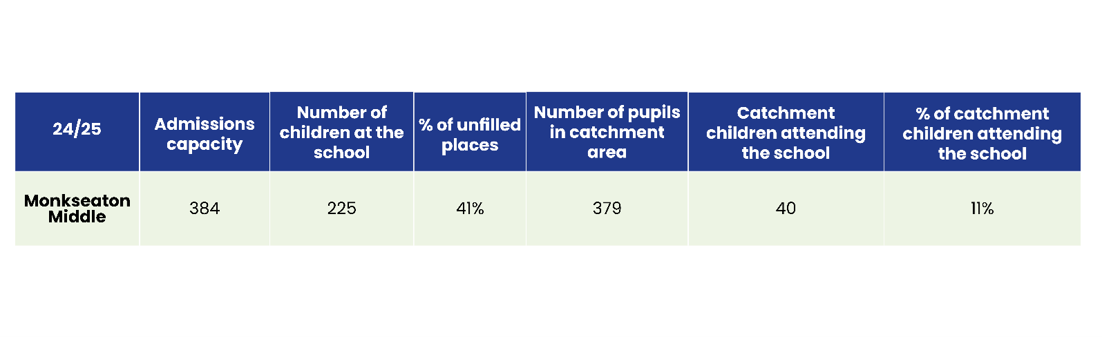 Currently, the vast majority of families living in the catchment area are not choosing to send their child to Monkseaton Middle.
