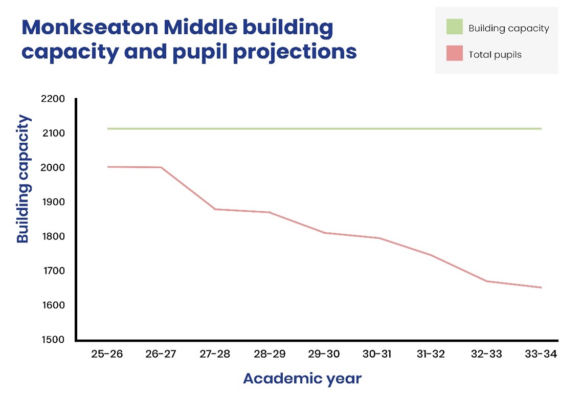 Pupil numbers at Monkseaton Middle School are falling and the school is only around 60% full.