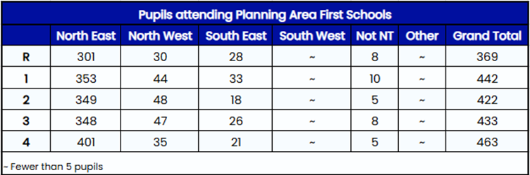 To achieve the alignment referred to above, it is proposed that the overall PANs of first schools within the NEPA are reduced by 60 places so that, in future, there are 390 places across each year group in the three-tier system – in First Schools, Middle Schools and the High School.