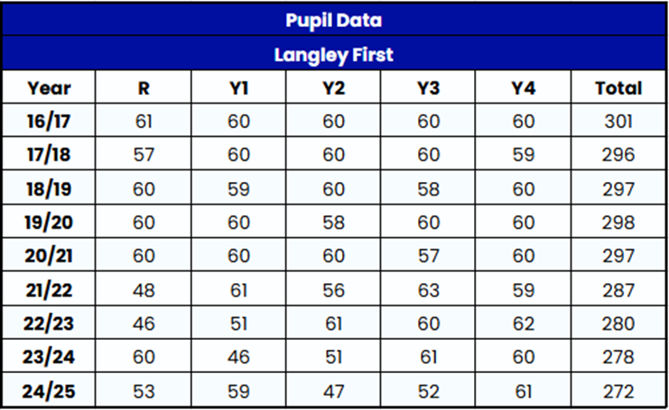 The Council is proposing to merge Langley First School and Appletree Gardens First School to create the same number of places in the First School phase as there are in the High School and potentially Middle School phase. This would mean the closure of Langley First School and the use of Appletree Gardens First School to accommodate the combined pupils.