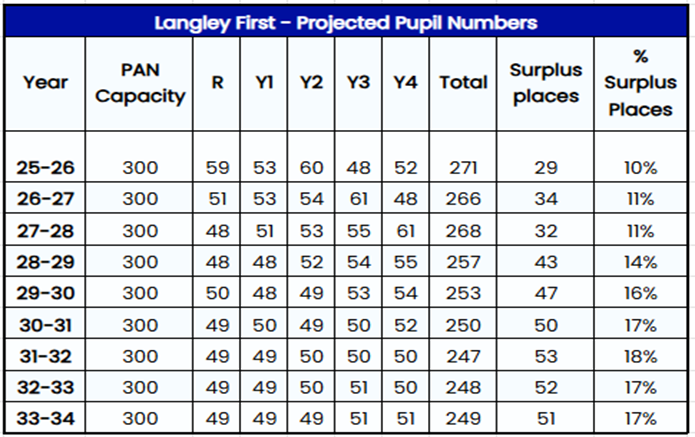 It is acknowledged that Langley First School is a good, valued school, however, the proposal is based on a number of factors including financial viability, proximity to other schools and the size of the school. The school is in financial deficit (with a 2025/26 Budget Plan of £0.100m) which would be amplified by the reducing birth rate and excess parental choice in the area.